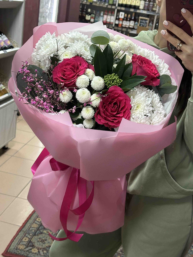 This tender charming bouquet would be suitable for a young girl and actually for a woman of any age: