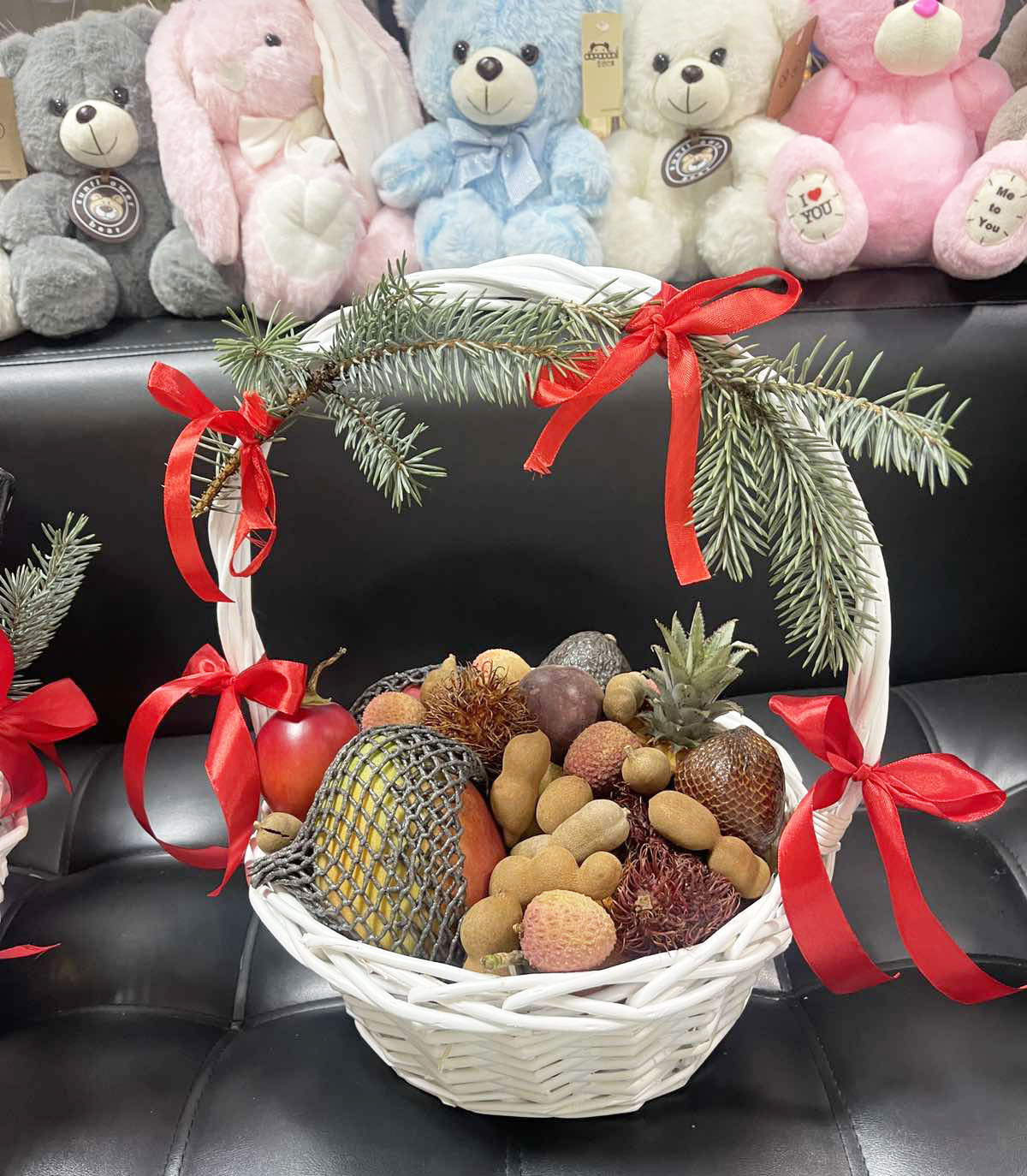 If we don't have enough time to send the gift box to the courier from our central warehouse, our florists will purchase everything from our local stores. In this case, we may have to substitute some fruits if something is out of stock at our local supermarket.