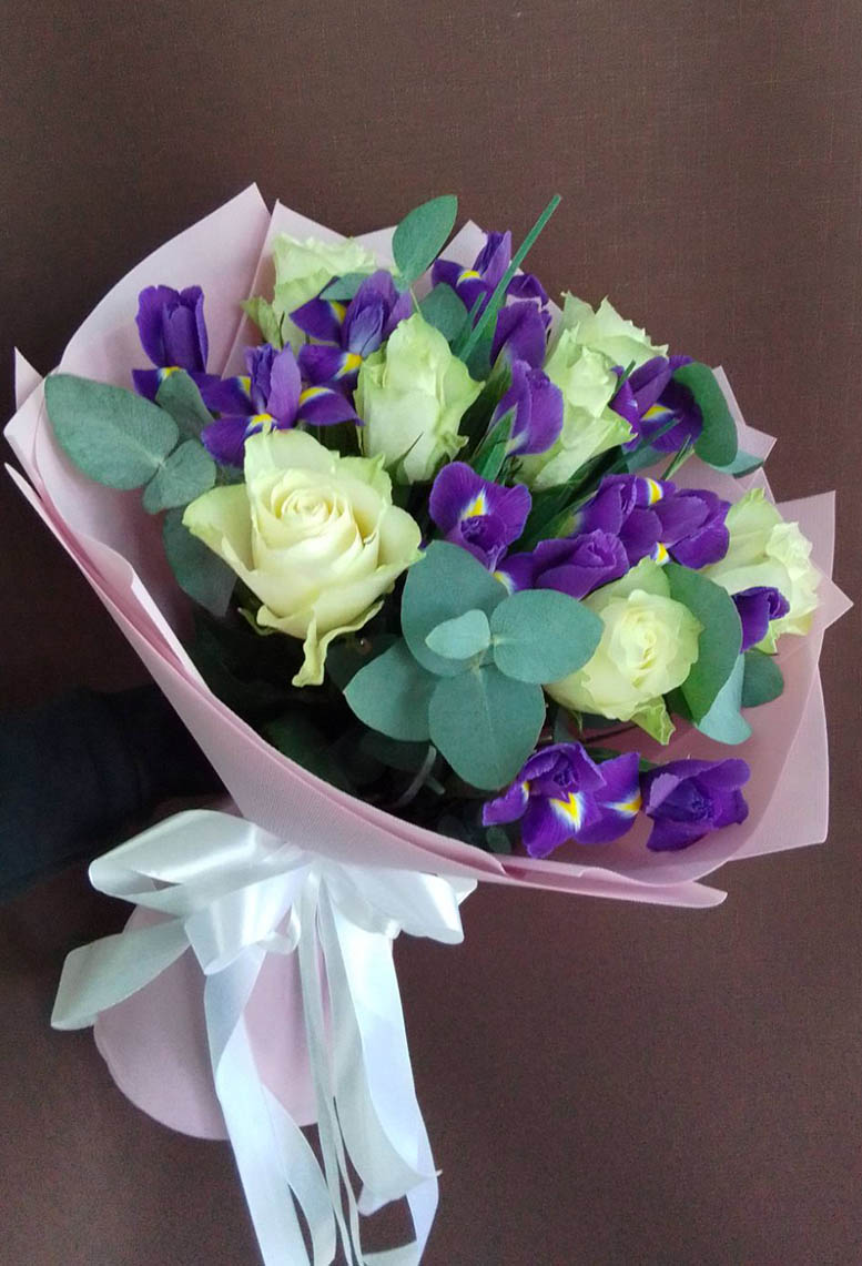 The season of blossoming for Irises is March-April. In other months we could substitute Irises with other flowers of the similar tones and equal by their value