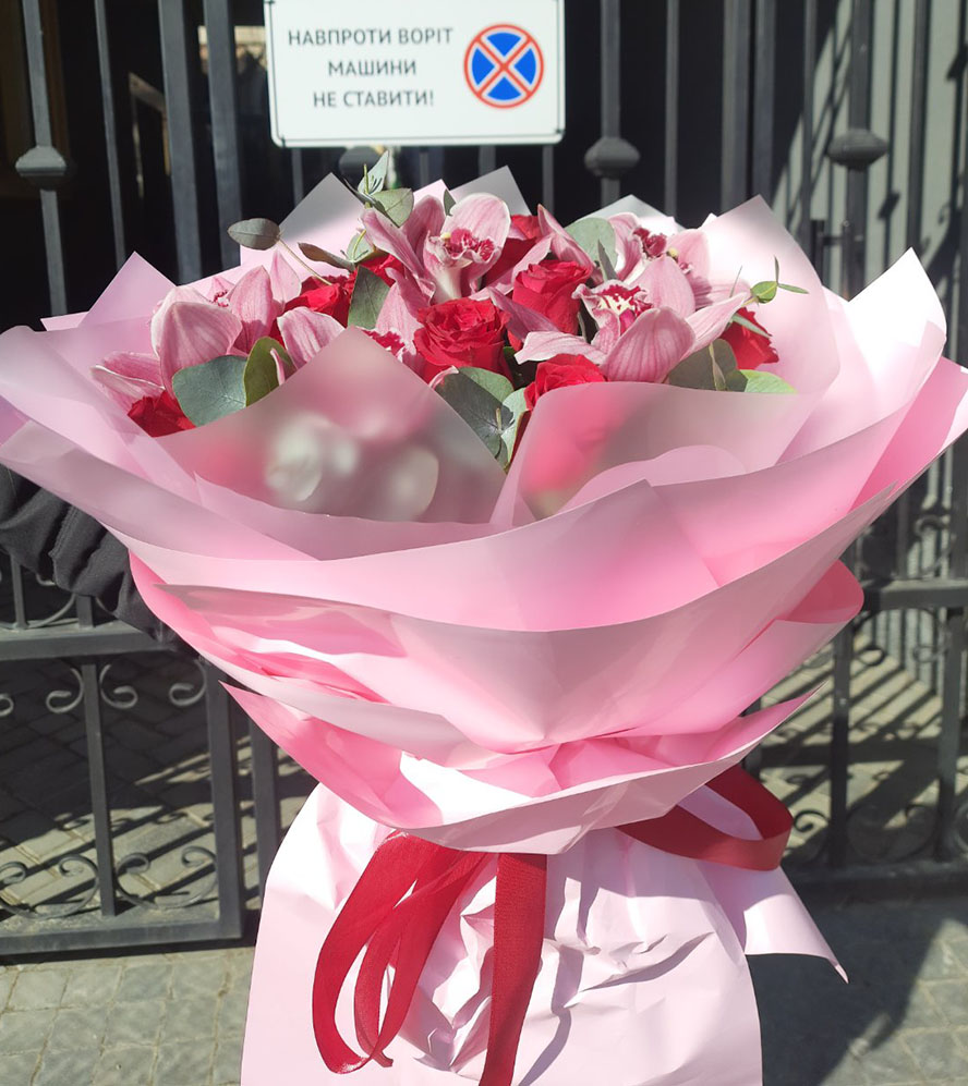 Our photo shows bouquet with 23 flowers totally. However you might select bouquet of a different size by the total number of flowers at it.