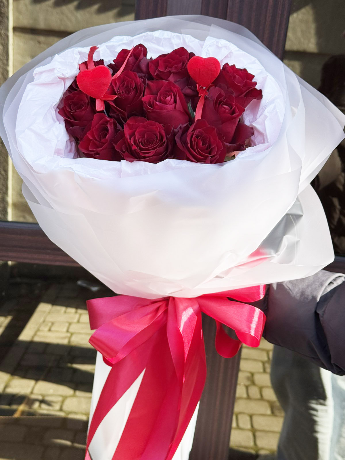 ATTENTION, pls! Special hearts for bouquets might be unavailable at some periods at our flowers shop. At such case we'll add any other heart as substitution, for example: heart shaped balloon, or chocolate heart, etc.