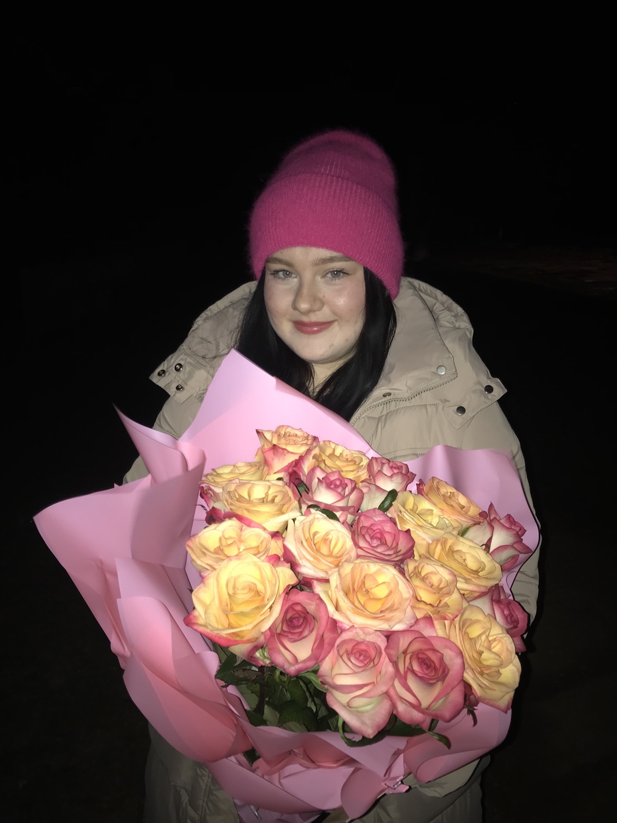 Please, notice, that there are many sorts of Pink roses and each sort has a specific tone from light pink to a dark pink that is close to crimson. As we never know which sorts are going to be available when your order arrives, we'll use the the roses, that our florist-designer selects as most suitable for this bouquet. As example, please, see bouquet with Pink Roses of a bit different tone at our additional photo.