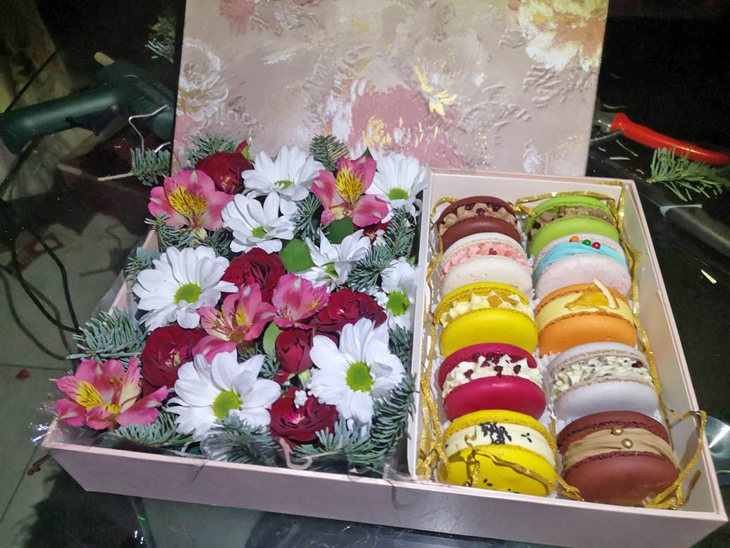 В небольших городках и поселках Макаронс - редкость и если нам не удастся их найти там, мы заменим макаронс на зефир в шоколаде, также любимые нашими девушками.