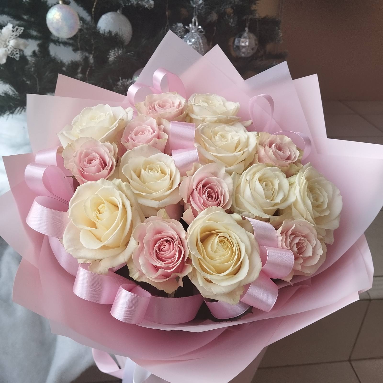 Классические Розовые и Кремовые Розы Элегантная упаковка Ленты атласные