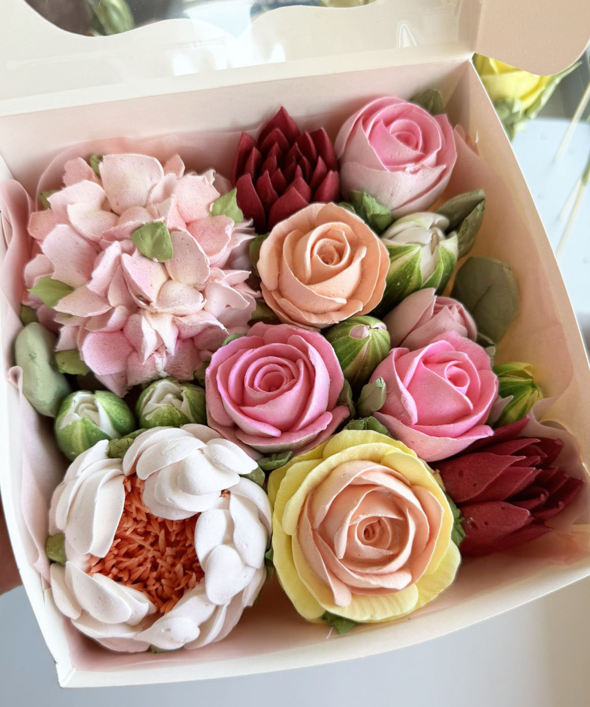 Цена композиции в подарочной коробке определяется ее размером. Например, композиция, представленная на этой странице имеет размер 15х15 см, т.е. это "Маленькая" композиция в нашей градации. Но вы можете заказать и большую.