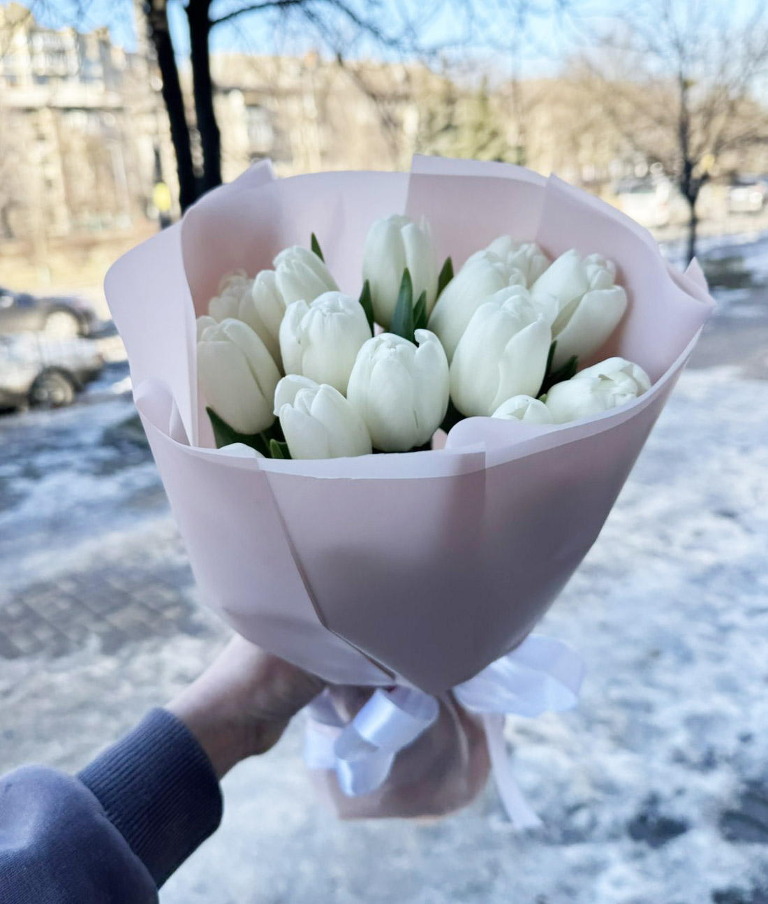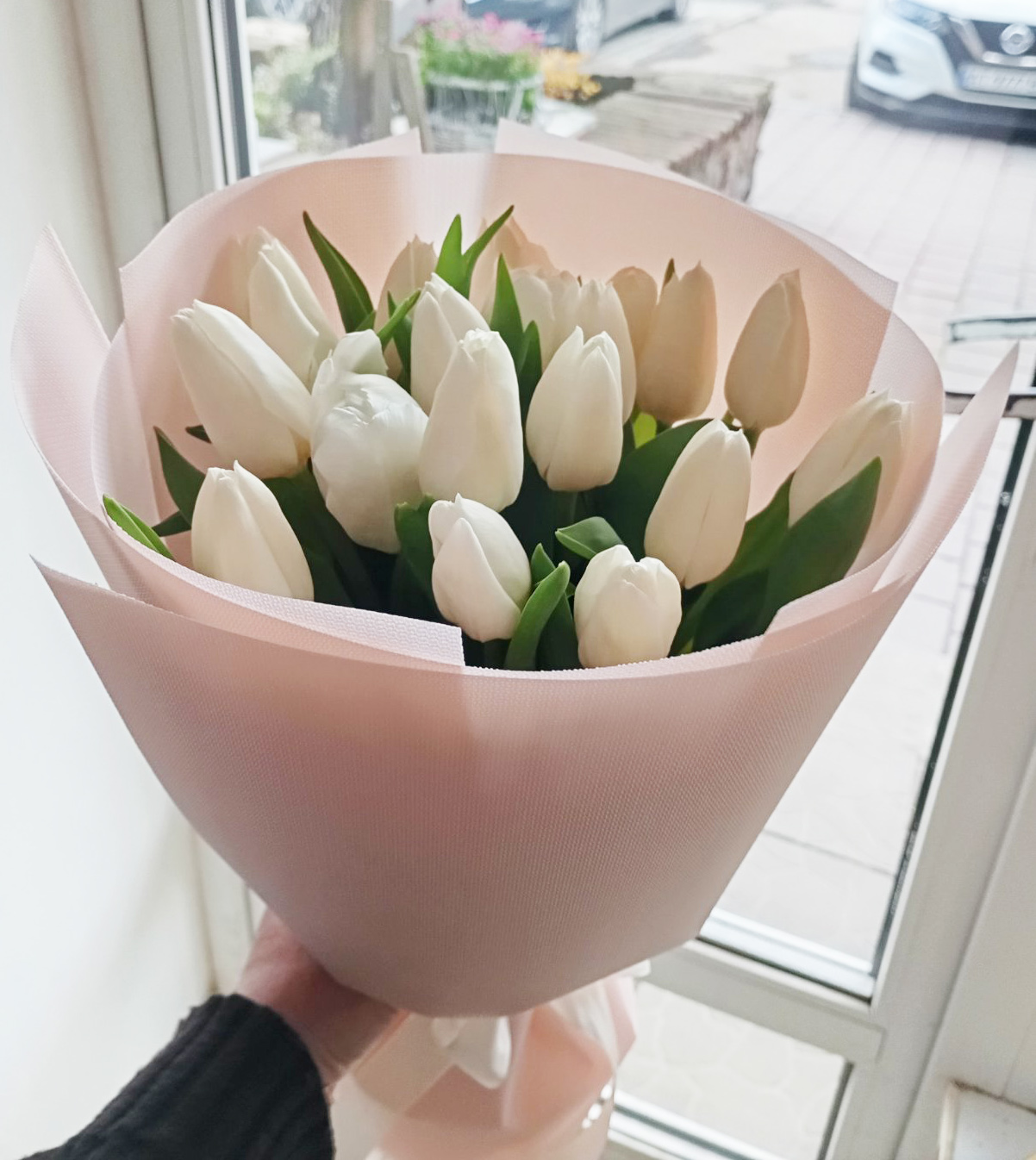 White Tulips bouquet, please, choose the number of flowers