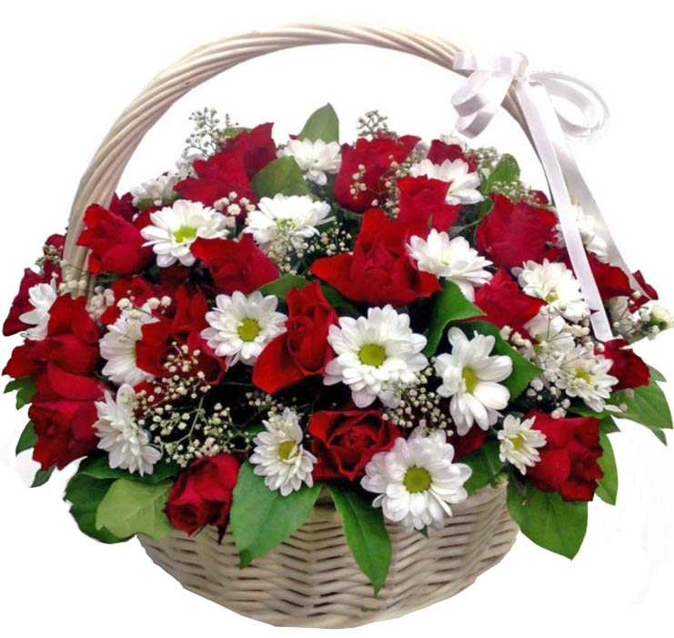 Кожен кошик прикрашений безліччю декоративної зелені та бантом.