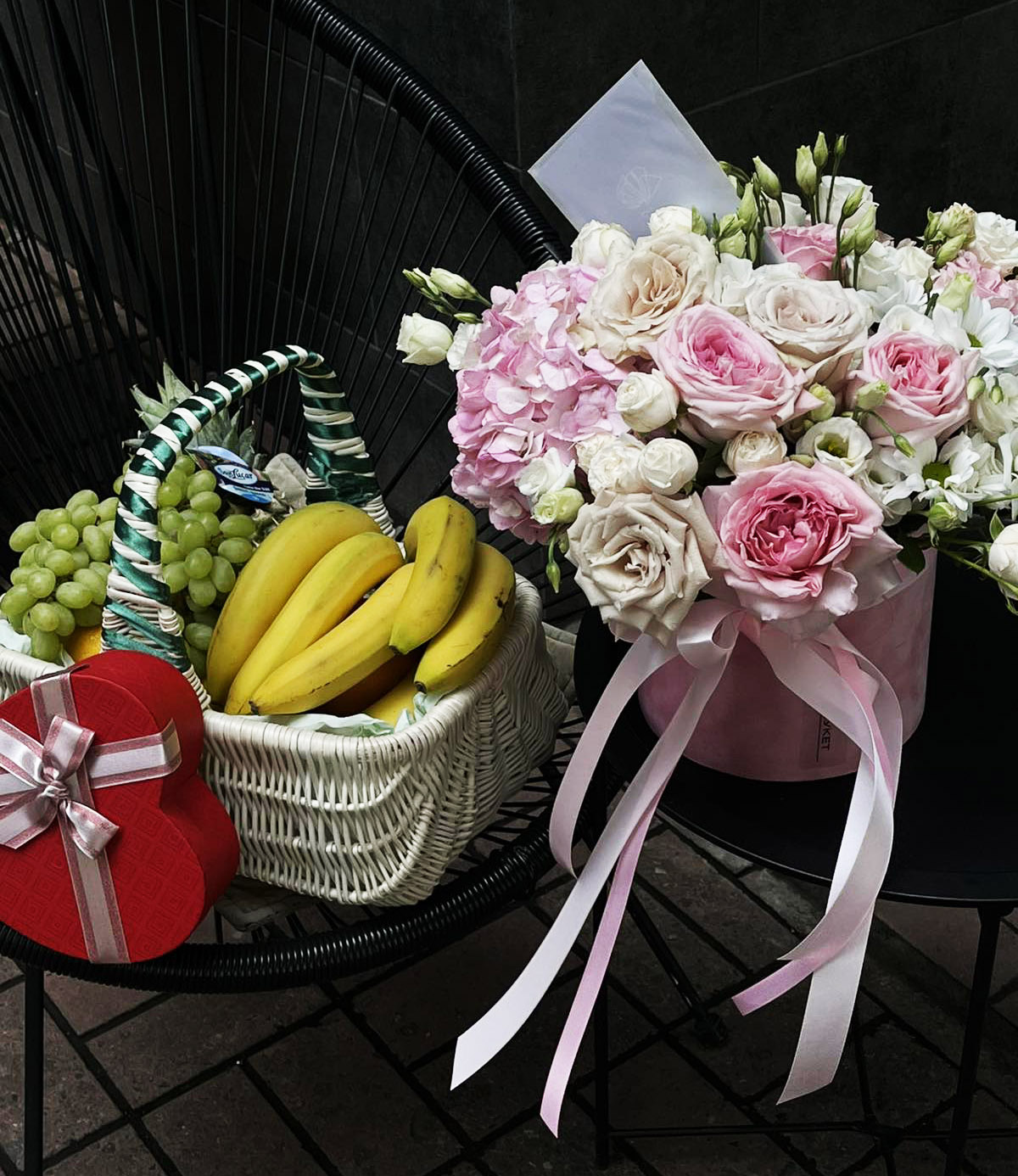 Every arrangement is designing based at the materials selection that is available at the moment at our flower shop (containers, boxes, baskets, strips, etc.). It means, that the ordered gift in general might look a bit differently than the one at our photo. However we'll do our very best to design it as close to what you see as possible. The high quality of the products is definitely guaranteed. Please, scroll down this page and take a look at the photos of this gift, that we delivered previously.