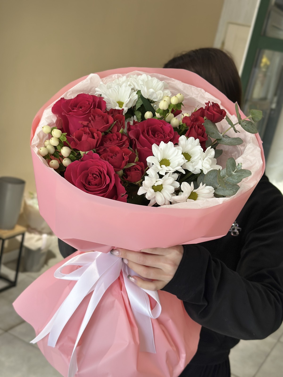 - eucalyptus, hypricum or other decorative greenery and filler