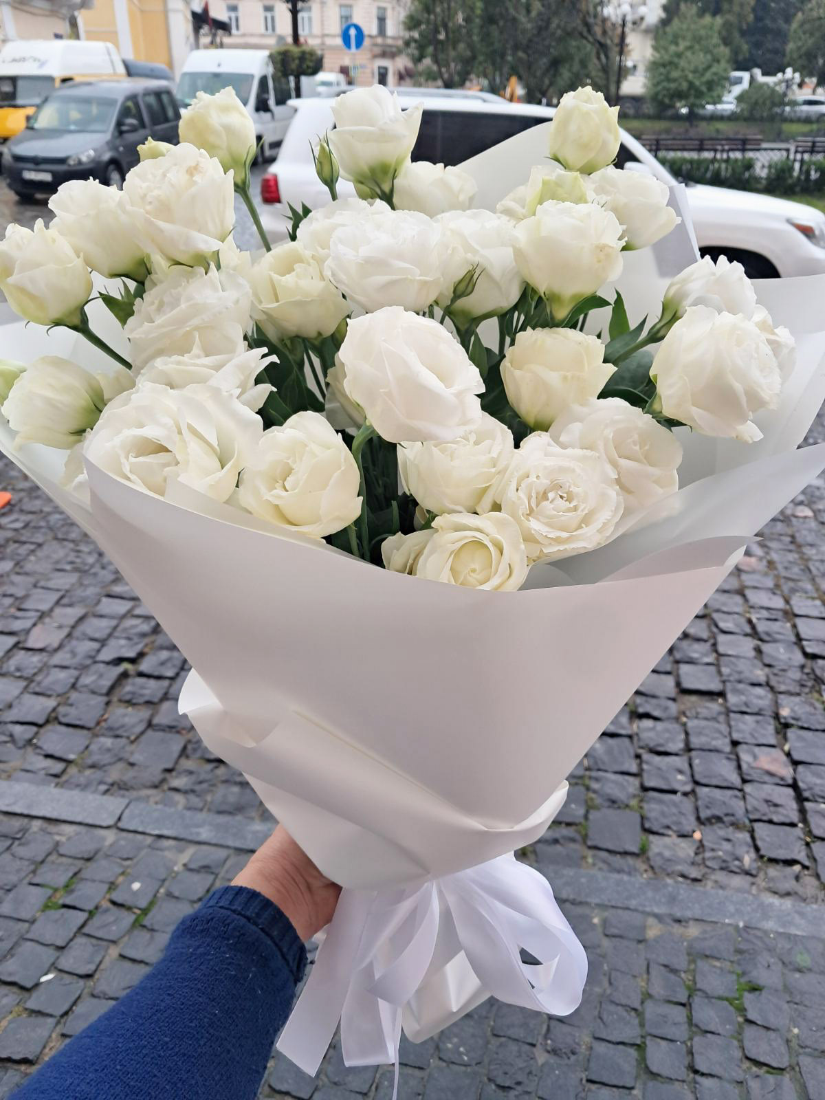 Эустома - совершенно особый цветок в ряду своих не менее прекрасных и даже самых дорогих и экзотических собратьев. В нем и нежность, и роскошь, и совершенство. Даже несколько веточек создают объем - на каждой ведь будет несколько раскрытых цветков и еще несколько бутонов, которые непременно распустятся позже. А еще каждая ветка делится на несколько меньших, каждая со своими листиками. Таким образом, букет из 25 веток эустомы выглядит огромным и роскошным!