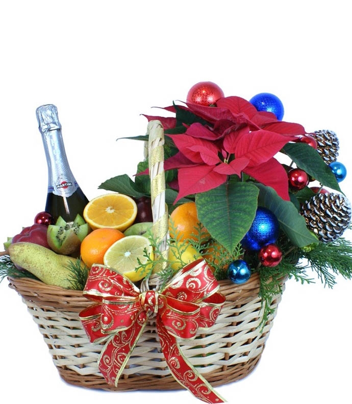 В корзинке также - 3 кг фруктов к Новогоднему столу и конечно же - шампанское, чтобы по-настоящему встретить приходящий Новый год.