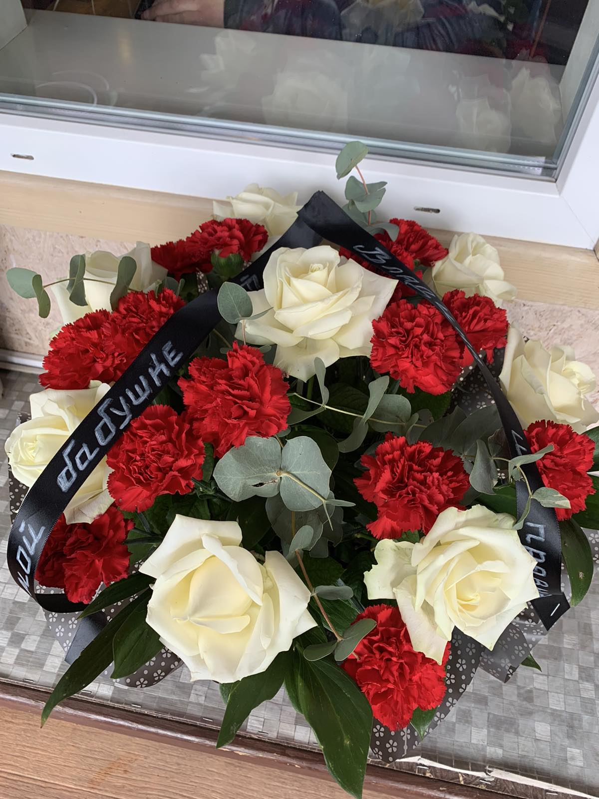 Траурную ленту можно заказать отдельно - чуть ниже на этой странице.