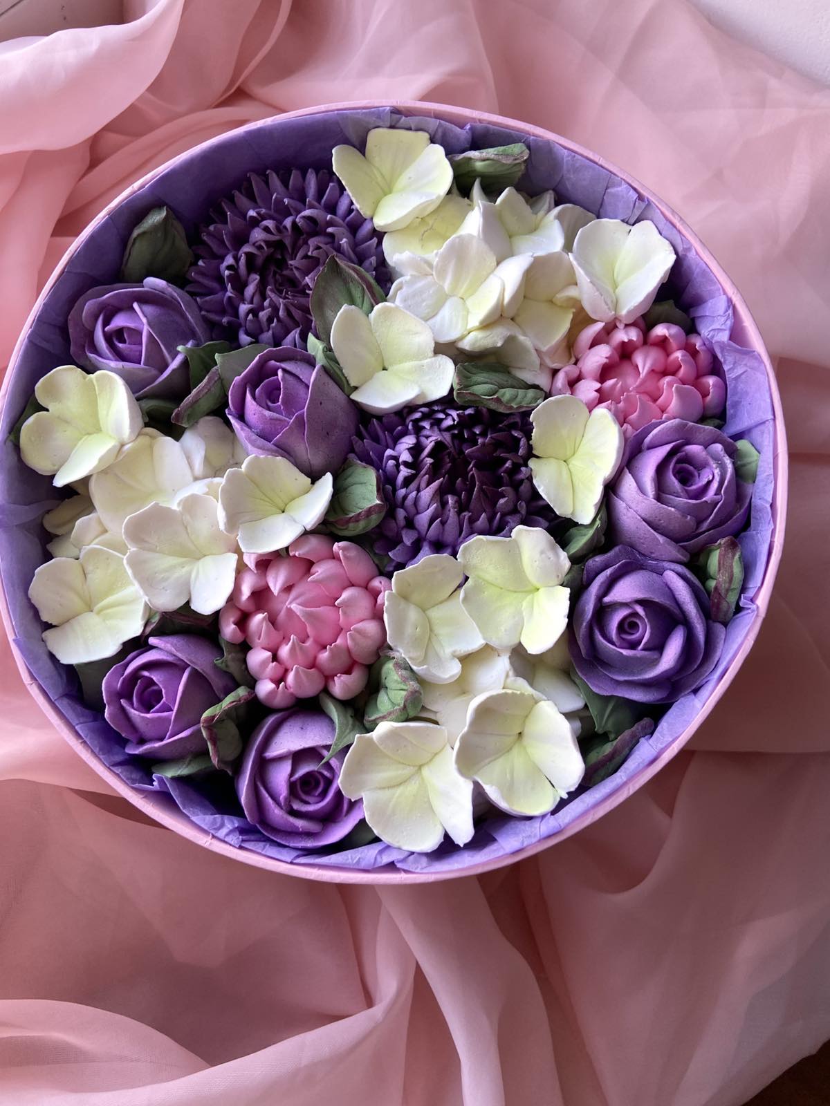 Handmade flowers are making per your order (to be absolutely fresh) of Zephyr - product, that is a loved sweet here in Ukraine. It is airy, weightless and completely natural delicacy that is making of a fruit and berry puree, egg white and sugar, and is held together with natural pectin, agar-agar or gelatin. More over, the confectioners usesnatural dyes that they extract from fruits, berries and some vegertables.
