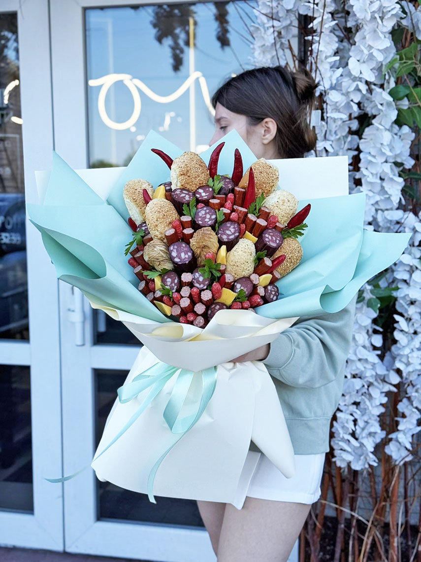 Їстівний букет - це і весела, і корисна річ для будь-якої людини! А такий Великий букет вистачить гарненько перекусити для цілої компанії друзів!